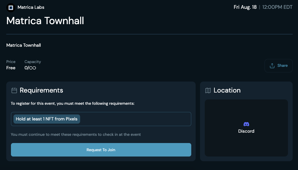 For IRL events, users can be scanned in once accepted. The "Hosts" of the event will have the ability to scan the QR code of the users who have been accepted.