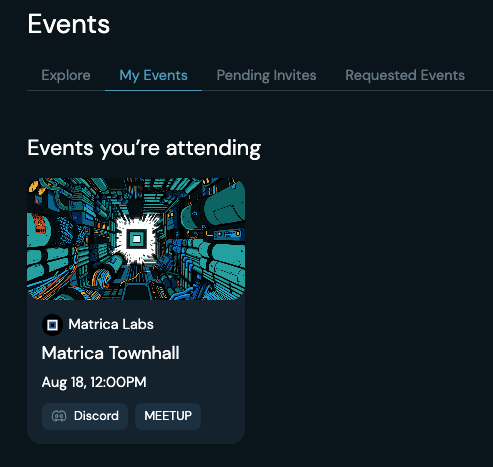 Once the Event is created, you can select the Event under the "Events" tab in order to manage attending and requesting users. Here, you will be able to fully manage your guest lists by accepting and rejecting user's RSVP's.